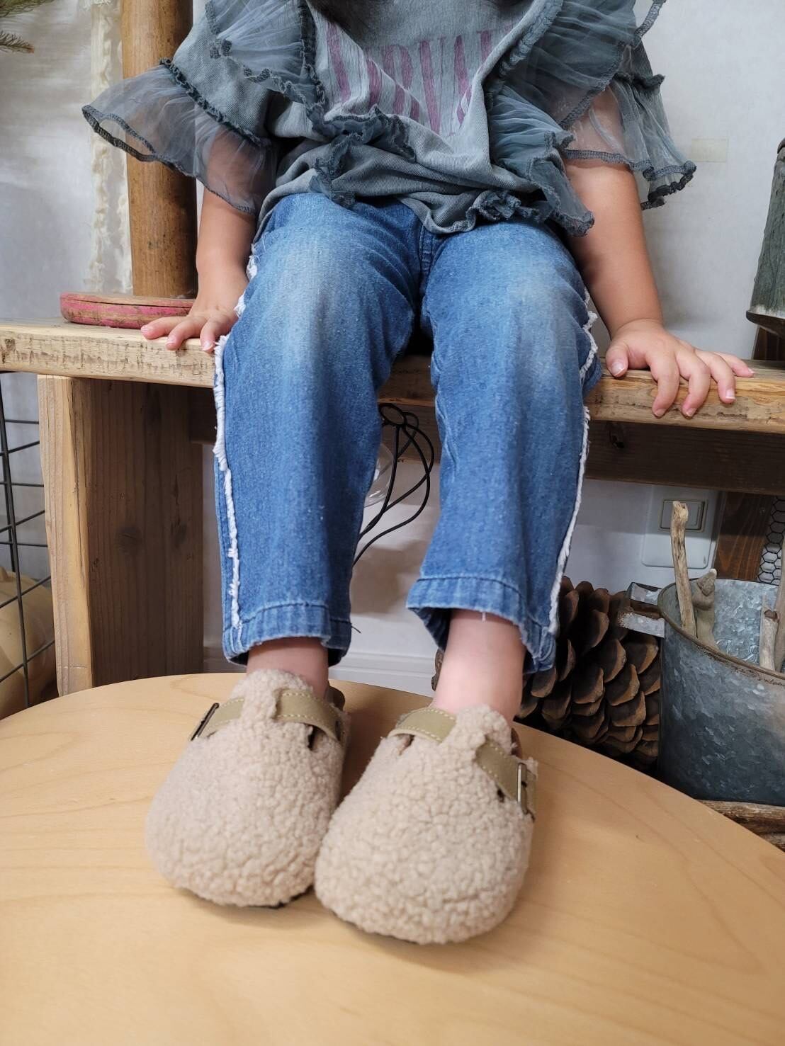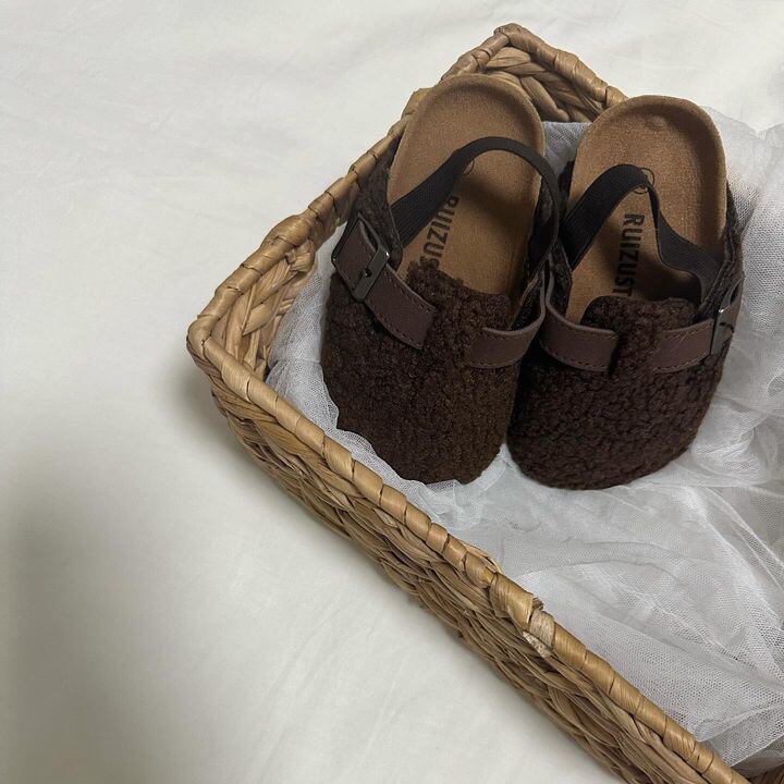 【13.0-21.0cm】cork-sandal 2color もこもこ サンダル 秋 冬 子ども キッズ かかとゴム付