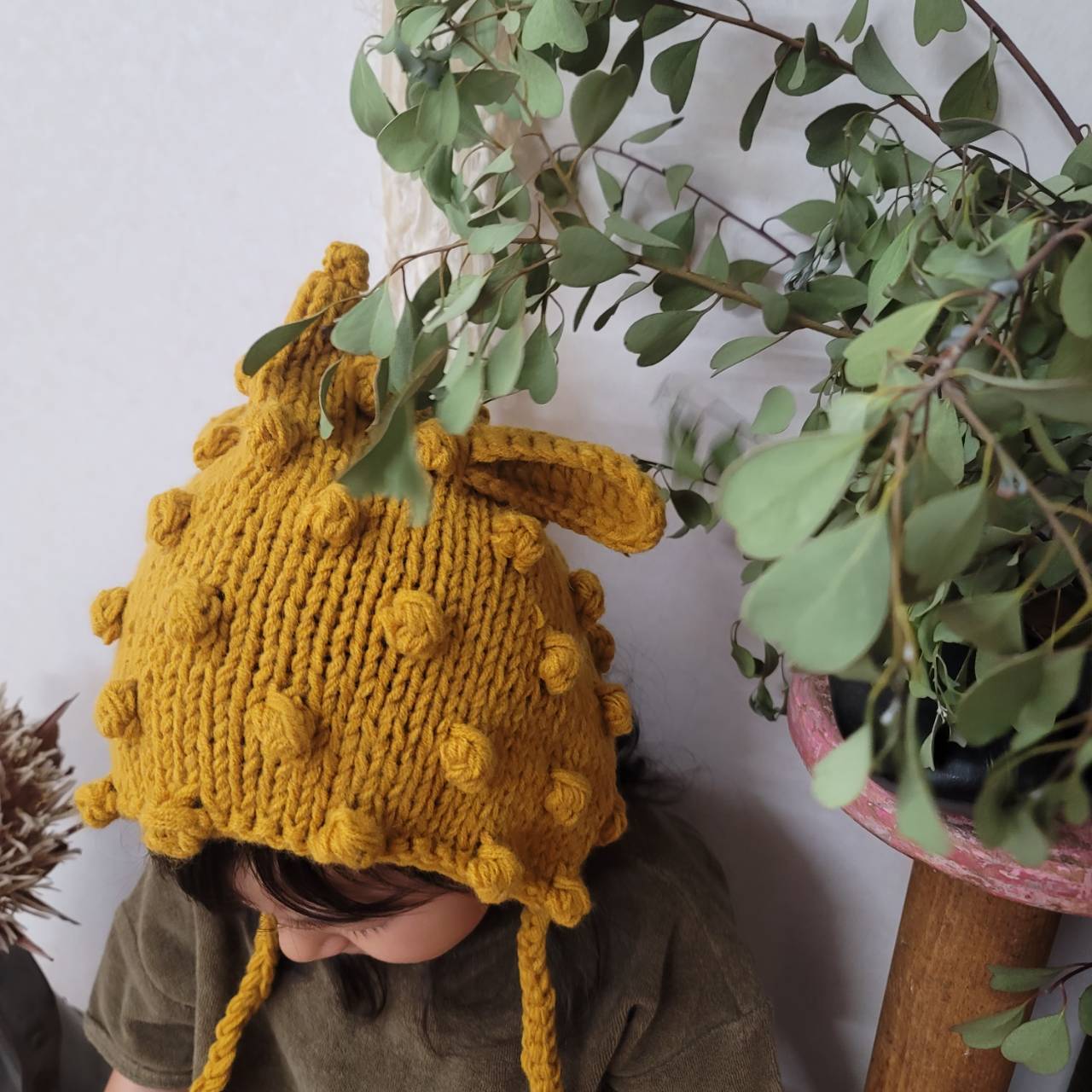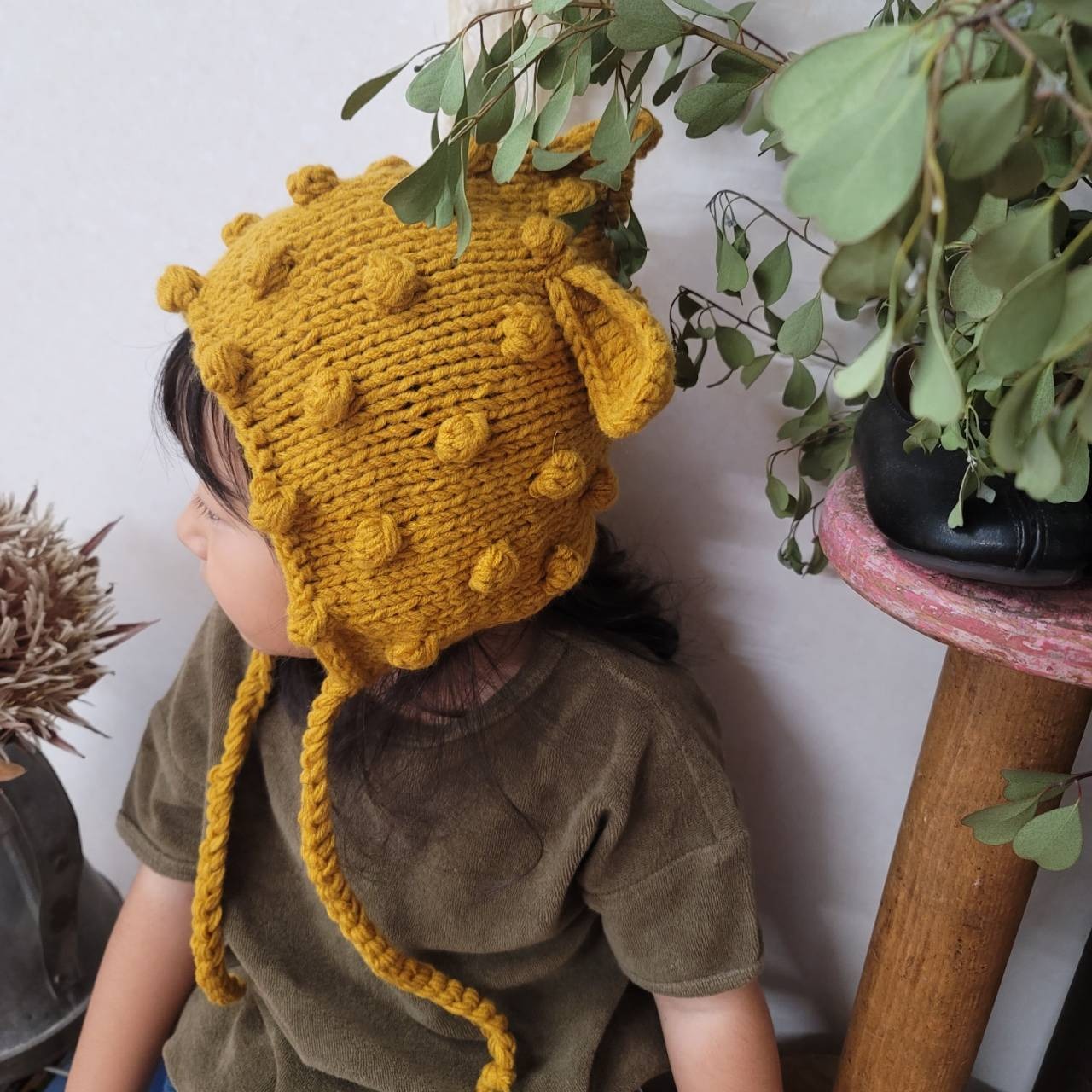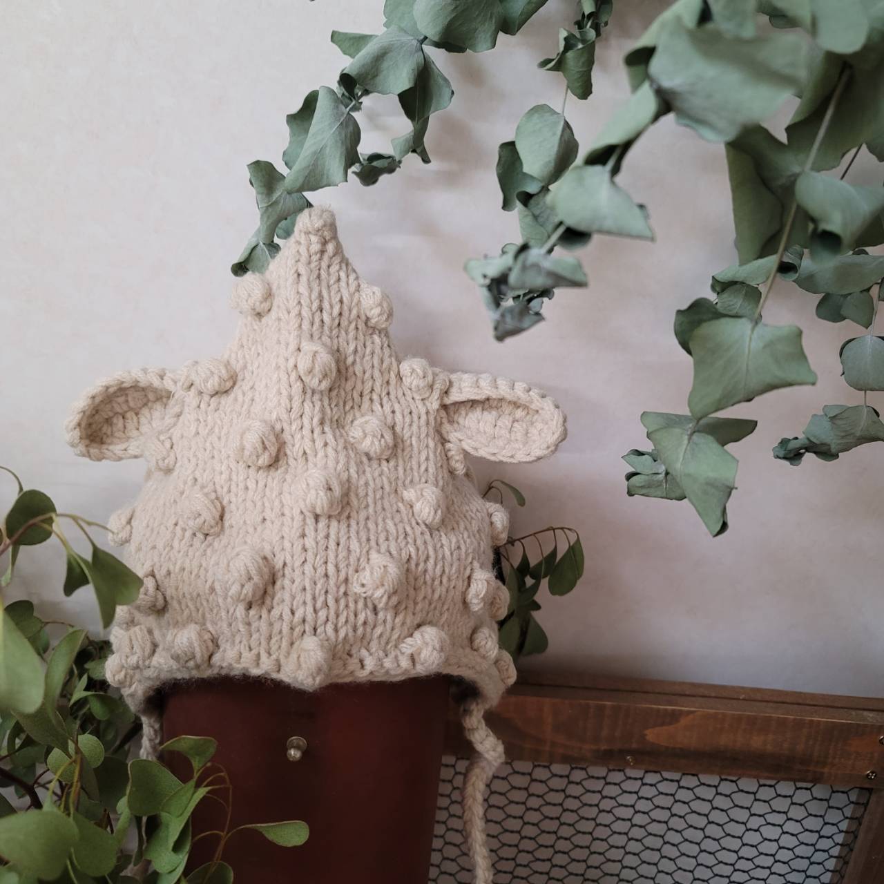 【47-52cm】sheep-ponpon-bonnet 耳付き ぽんぽん ニット帽