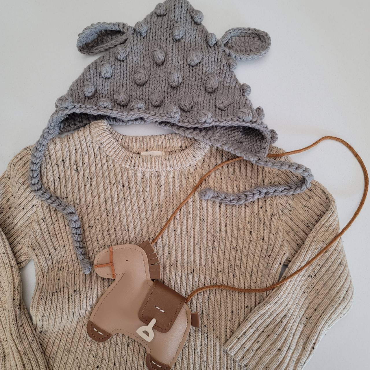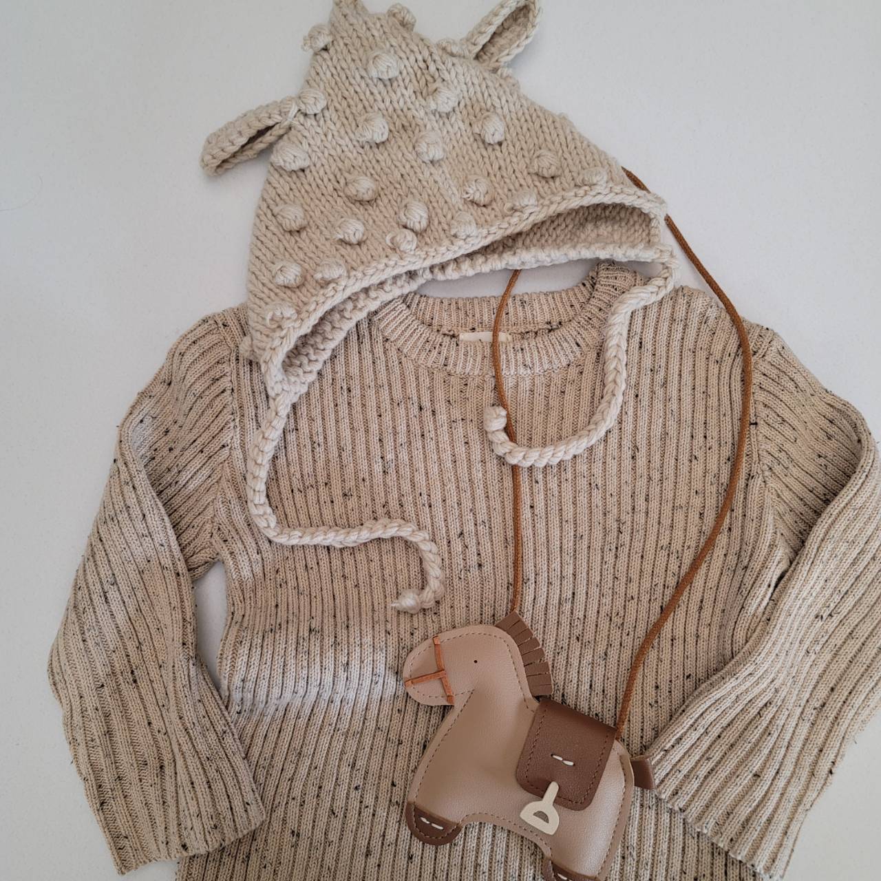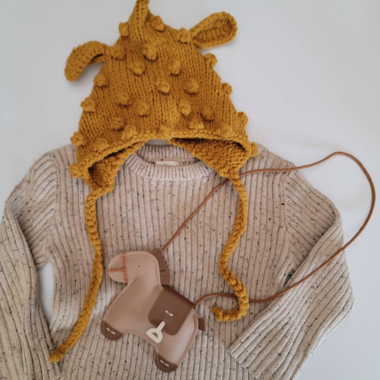 【47-52cm】sheep-ponpon-bonnet 耳付き ぽんぽん ニット帽