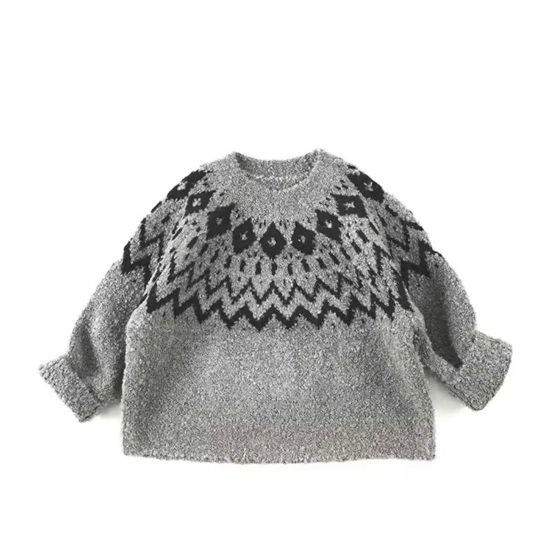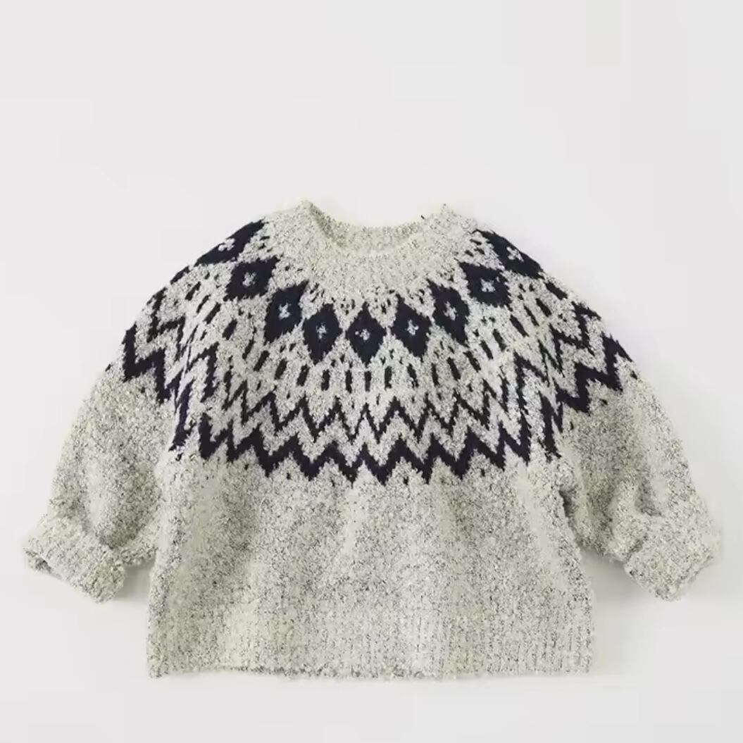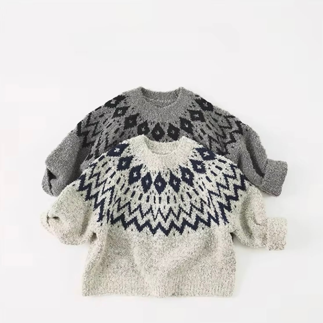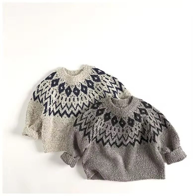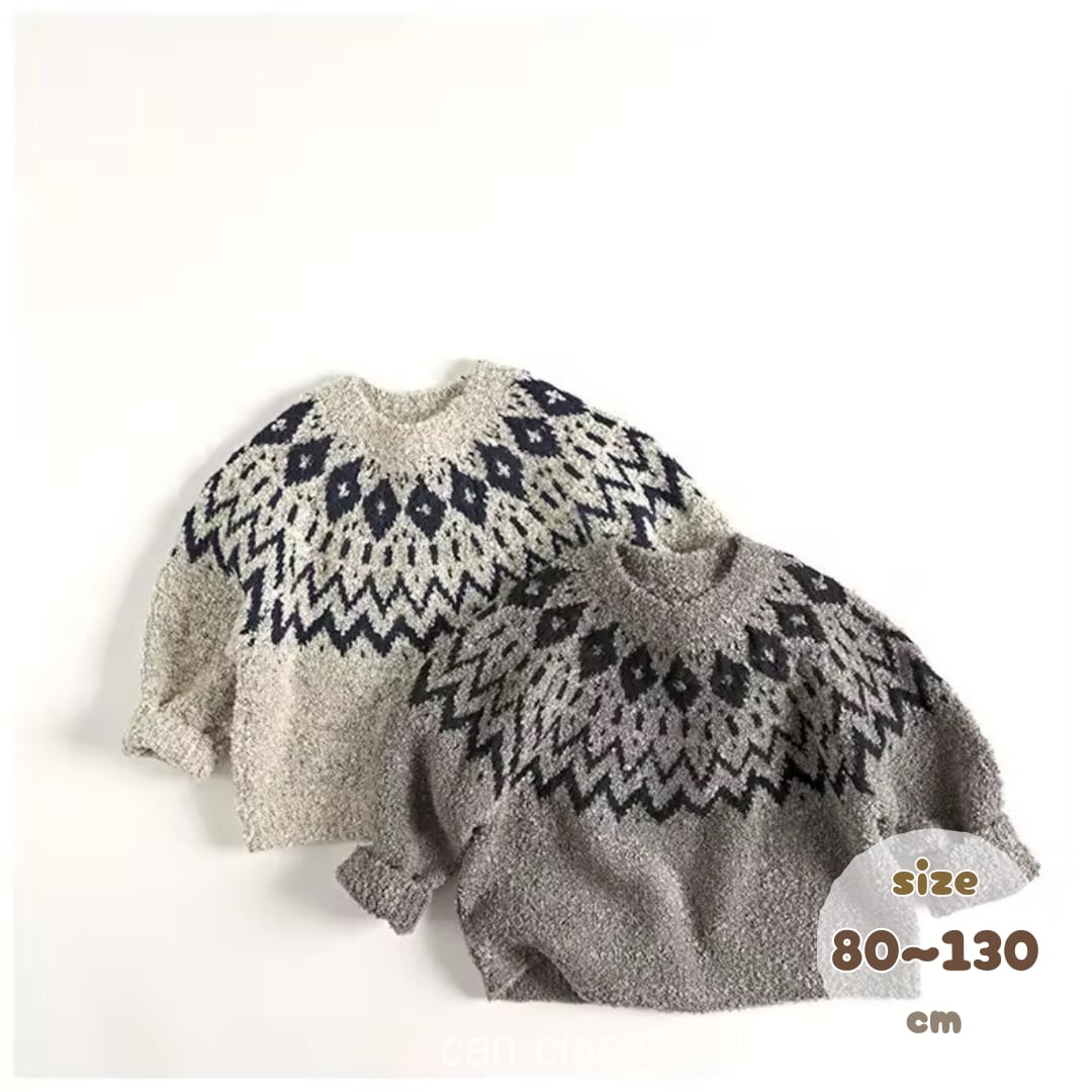 【即納 80size white】nordic-sweater ノルディック柄 セーター 子ども 男の子 女の子
