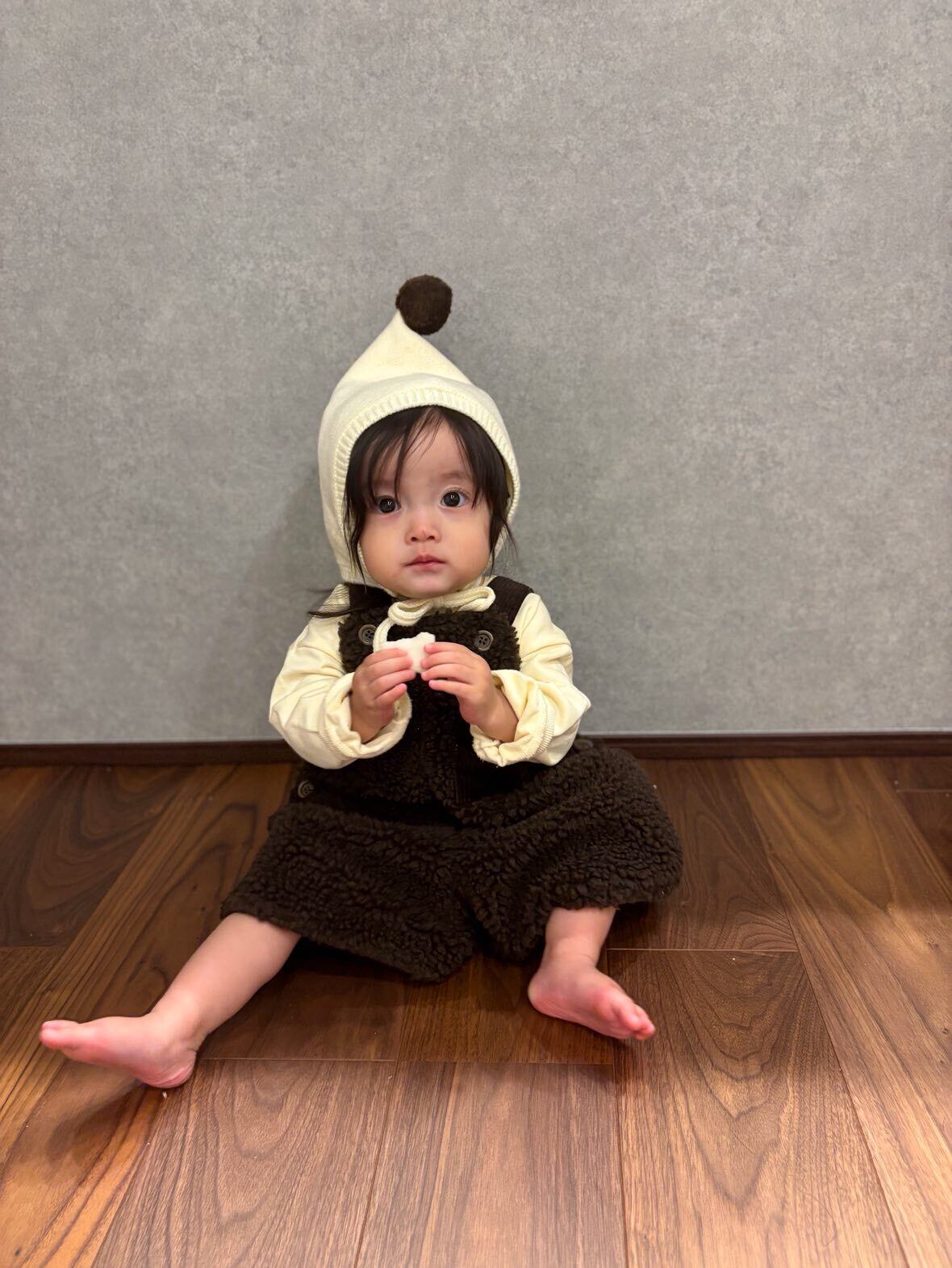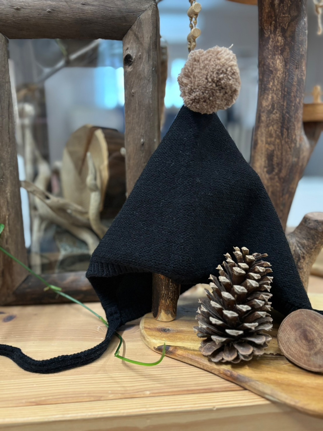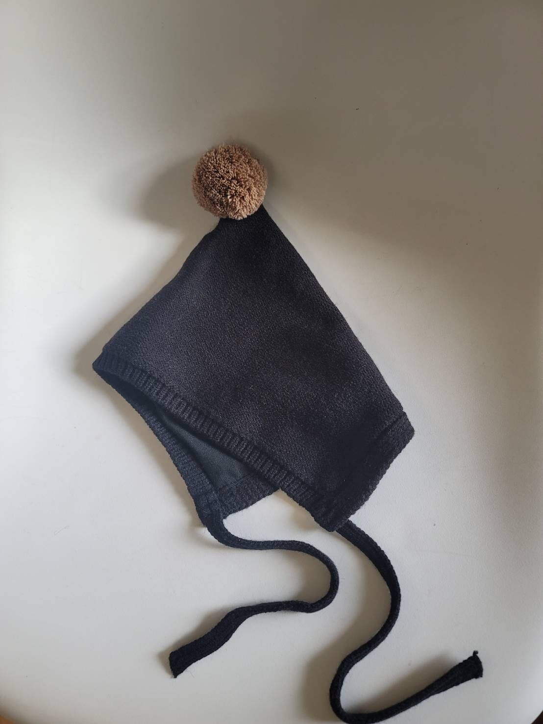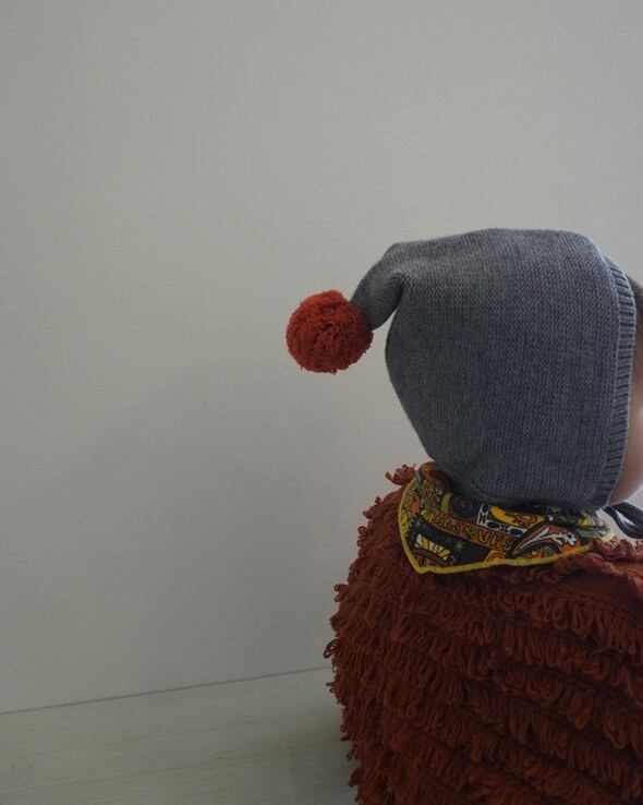 【即納 black】ponpon bonnet ベビー 帽子 ニット帽 ポンポン