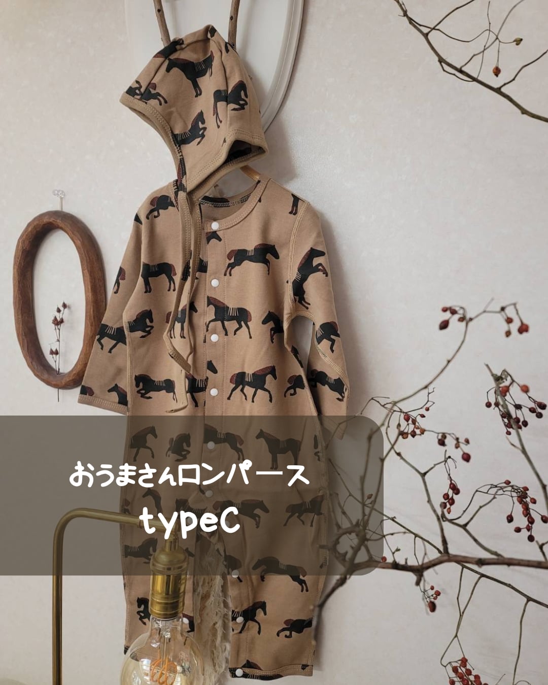即納【66‐80size】typeC おうまさんロンパース 3type 午年 うま ベビー