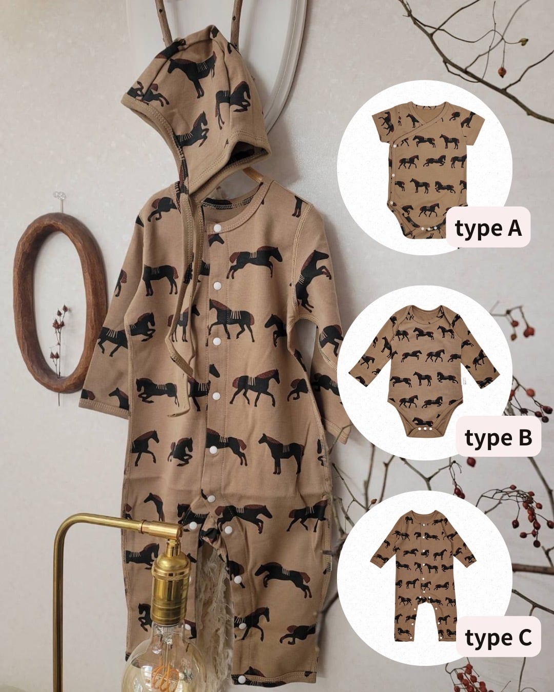【66‐80size】【ご予約】おうまさんロンパース 3type 午年 うま ベビー