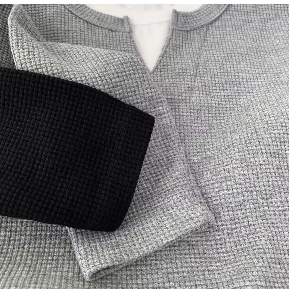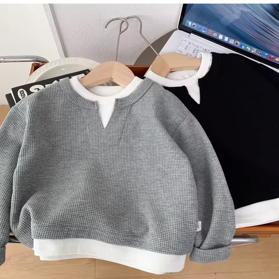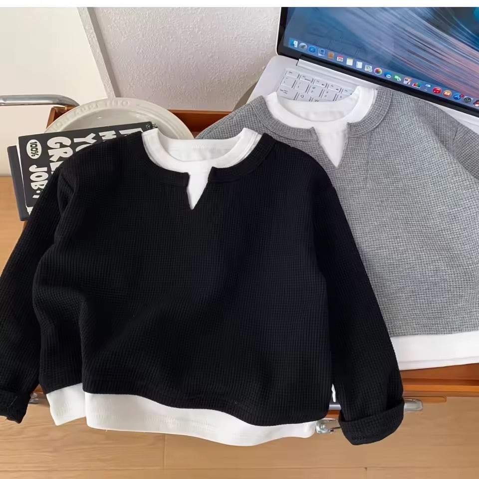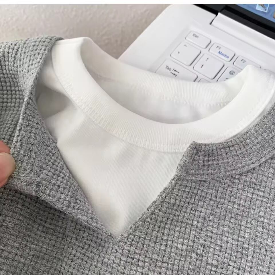 【90-150size】フェイク 2ピース 重ね着風 カジュアル ワッフル