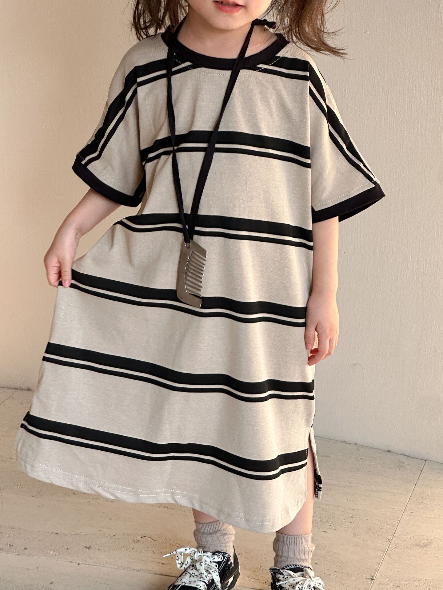 【80-140size】【ワンピース】リンクコーデ ストライプ セットアップ