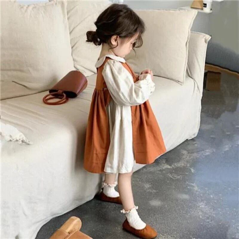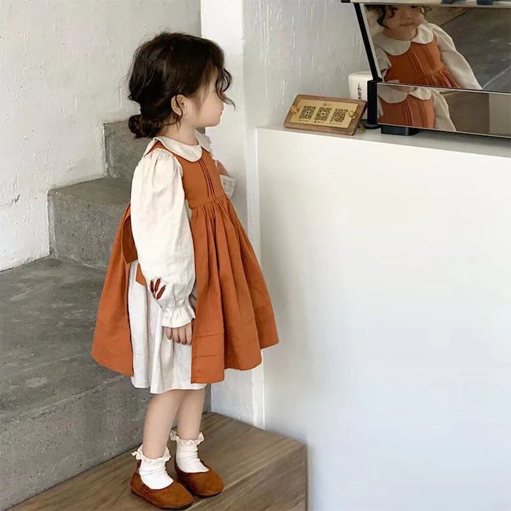 【90‐120size】orangeembroidery-one-piece 2piece set ワンピース エプロン